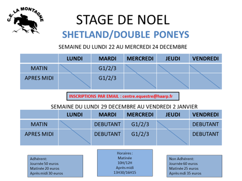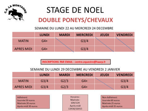 Inscriptions par email au centre.equestre@haarp.fr.